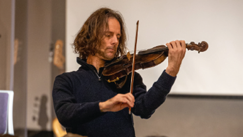 Markusevangeliet er evangelisten Markus' beretning om Jesu liv og gerning, og det er det korteste af de fire nytestamentlige evangelier med 16 kapitler, der kan opdeles i omkring 90 lignelser, historier og assimilationer. Uden manuskript og tro mod teksten fortæller jeg Markusevangeliet i min multimedieoptræden. I Kristi fodspor har jeg rejst gennem Mellemøsten og taget billeder af kulturlandskaberne i et forsøg på at finde 90 bibelske motiver, der fungerer som visuelle hjælpemidler til de 16 kapitler. Disse billeder projicerer jeg på en skærm, mens jeg fortæller evangeliet, og spiller samtidig mine egne, selvkomponerede stykker på violinen.